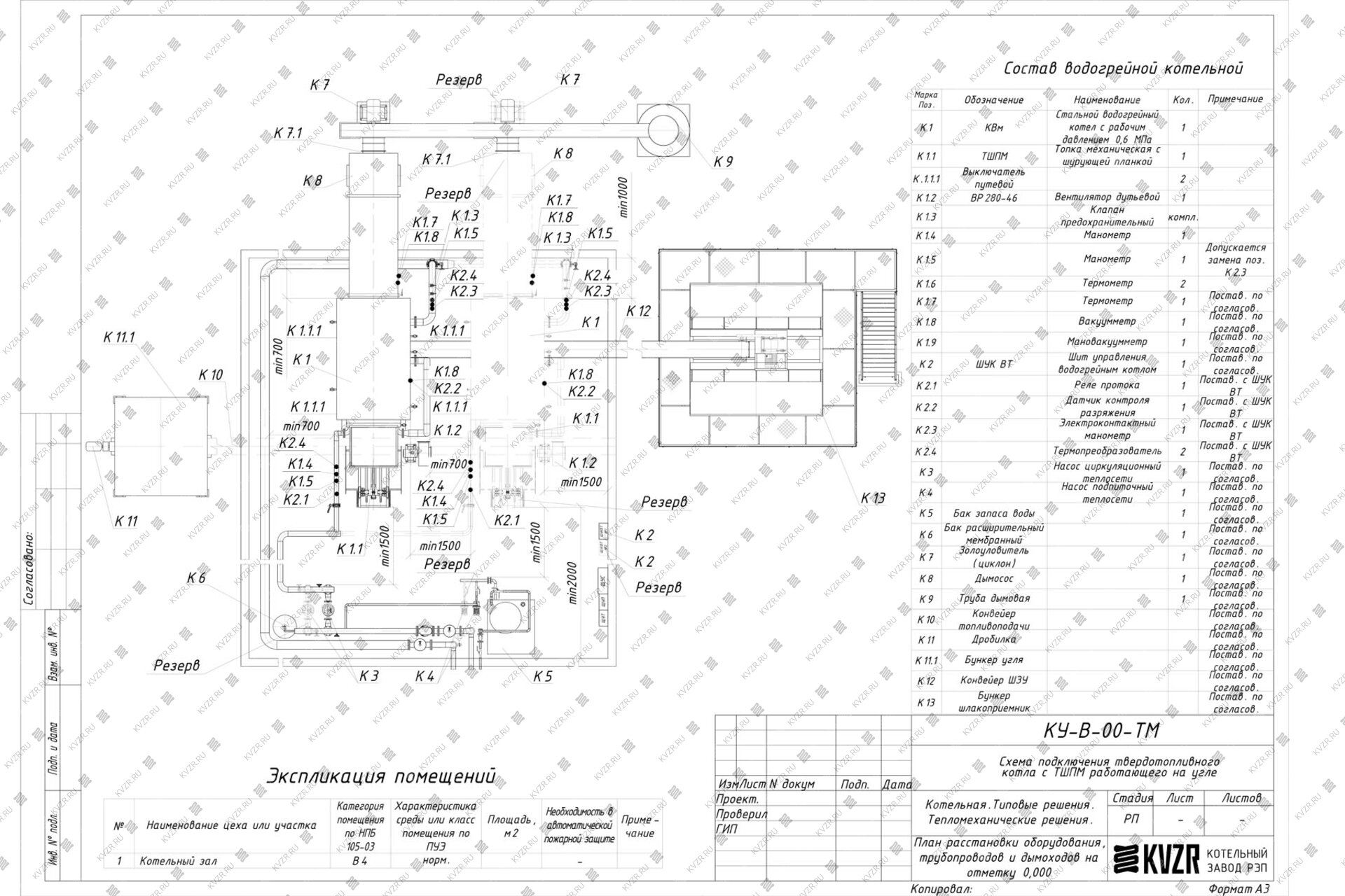 Котельный завод «РЭП» изготавливает водогрейные котлы КВм 1 МВт с шурующей планкой ТШПМ не только по типовым проектам, но и по техническому заданию заказчика.